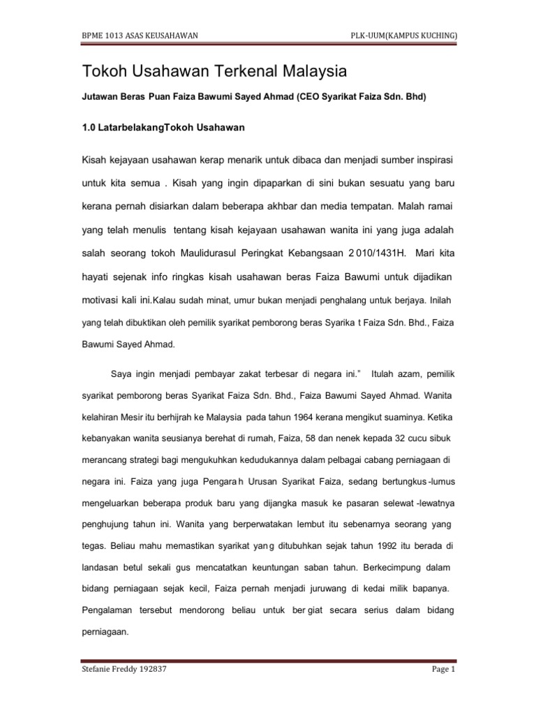 Tokoh Usahawan Terkenal Malaysia Pdf