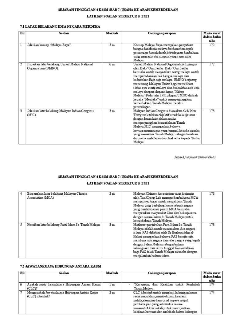 Sejarah Tingkatan 4 Bab 7 Usaha Ke Arah Kemerdekaan Sumber Pendidikan
